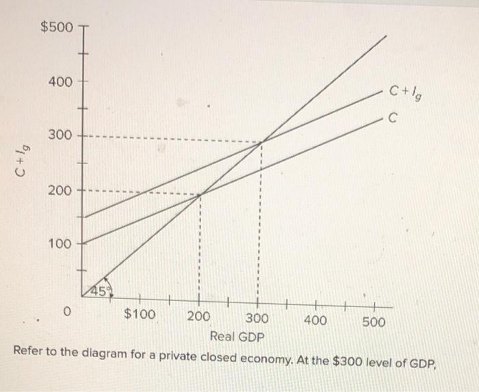 Refer to the diagram for a private closed economy. at the $200 level of gdp,. August 1, 2021 by quizs. Refer to the diagram for a private closed economy. Gross investment. Refer to the diagram for a private closed economy. Gross investment. A) is positively related to the level of GDP. B) is negatively related to the level of GDP. C) is independent of the level of GDP. D) must be subtracted from consumption to determine ... C) $200. D) $100. Answer: B. 100. Refer to the above diagram for a private closed economy. At the equilibrium level of. GDP, investment and saving are both:.32 pages Refer to the diagram for a private closed economy. The equilibrium level of GDP is: a. $400. b. $300. c. $200. d. $100. 17. Refer to the above diagram for a private closed economy. Unplanned changes in inventories will be zero: A) only at the $300 level of GDP. C) at all levels of GDP. B) only at the $200 level of GDP. D) only at the $400 level of GDP. Answer: A