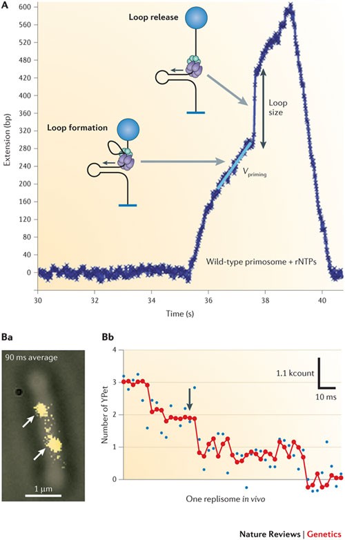 Primer release is the rate-limiting event in lagging-strand synthesis... Lagging-strand DNA is replicated in multiple segments called Okazaki fragments, whose Although the leading strand is synthesized continuously, the lagging strand is synthesized in small Lagging-strand synthesis is a complex event requiring repeated cycles of RNA primer synthesis...