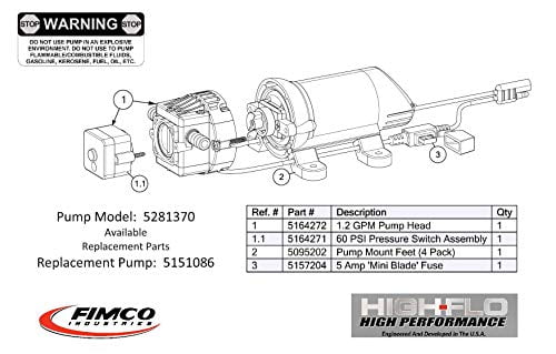Pump Parts - FIMCO - FIMCO Sprayers Sort By: Relevance A - Z Z - A High To Low Low To High. FIMCO 60 PSI Pressure Switch For High Flo High Performance 1.2 and 4.5 GPM Pumps. 5164271. $19.99. Pump Head for 4.5 GPM High Flo 12V Pump. 5151097. $49.99. High Flo 60 PSI Pressure Switch for High Flo 2.1 And 2.4 GPM Pumps.